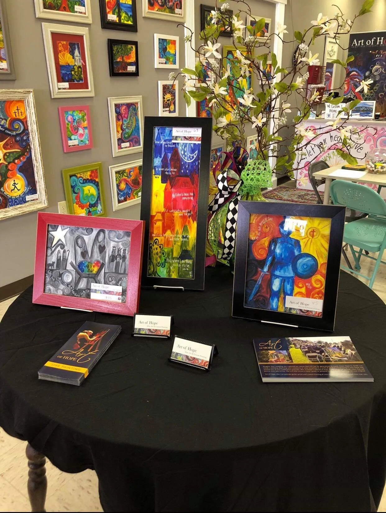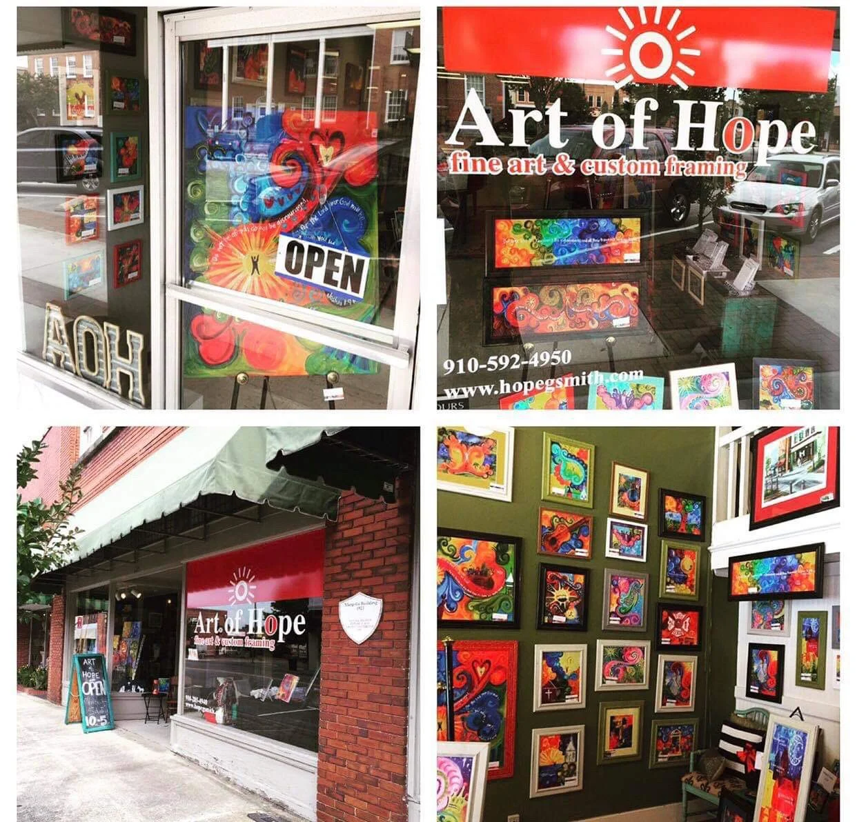 When I knew teaching art was not for me, I set down one day and decided to just dream up what I would really would want to do if I could do anything. I wrote it all down. I wanted a gallery to sell my art and a frame shop to go with it (they kinda go hand in hand). I had been told by one of my college professors that I could open a gallery if I moved out of NC somewhere art was thriving (lol). Well here I was in Wallace NC with population of 3500 and not what I’d call an “art community” to say the least. But I was young and clueless enough to think it could work (thank God). So...I opened Art of Hope and have literally prayed my way through this journey. I now have 3 stores and ship all over the world. Our minds are powerful and if we believe we can...we can. If we seek HIM first and let him guide instead of “reason” then he will NOT let us down. “Delight in the Lord and he will give you the desires of your heart.” He has done just that and continues. I could have never dreamed this up! Well I guess I did and then he decided to blow it out of the water! Lol